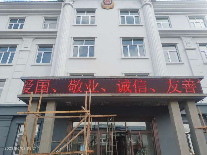 本項目案例是我公司(榮臻電子)在黑龍江某機關事務所安裝的一個P2.5小間距全彩顯示屏項目,項目的具體展示效果如下: